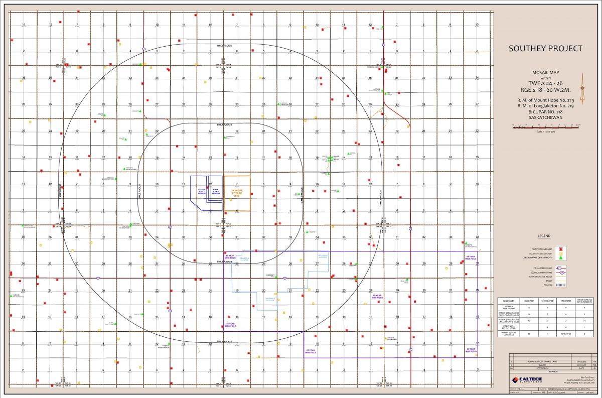 Site-specific occupational health and safety plans, and environmental management plans will be developed for the Southey Project to meet regulatory requirements using the results of the environmental assessment, the risks identified in the planning stages, and input received from the Southey Project Working Group and the Inter-Municipal Advisory Committee. This will include having an emergency response plan in place and a team who is trained to respond to security issues, accidents and other incidents that may occur during construction and operations. The construction camp will be included in these plans.