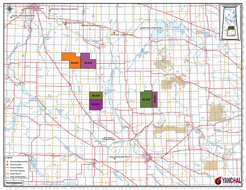 2015年,兖煤加拿大公司在加拿大萨省拥有19个探矿权许可证,涵盖132.5万英亩。在上述重点区块中,兖煤加拿大公司完成大量勘探工作,部分重点区块被选定为目标区,开展进一步勘探开发工作。如上图所示,公司目前拥有6个采矿权区块。